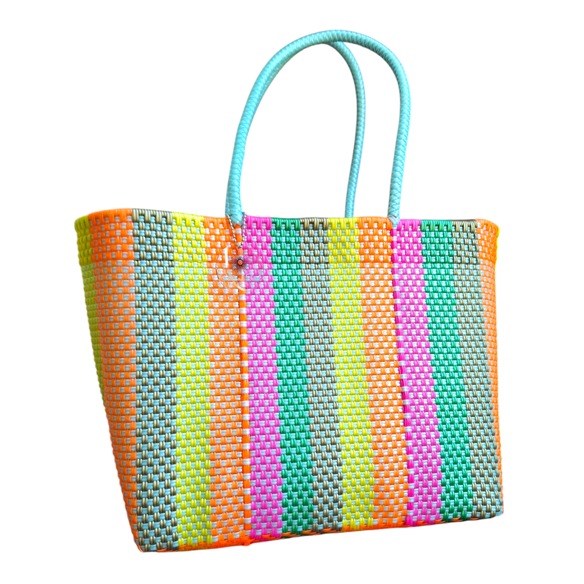 100% recycled plastic handmade bag, ensuring unique craftsmanship while reducing waste.