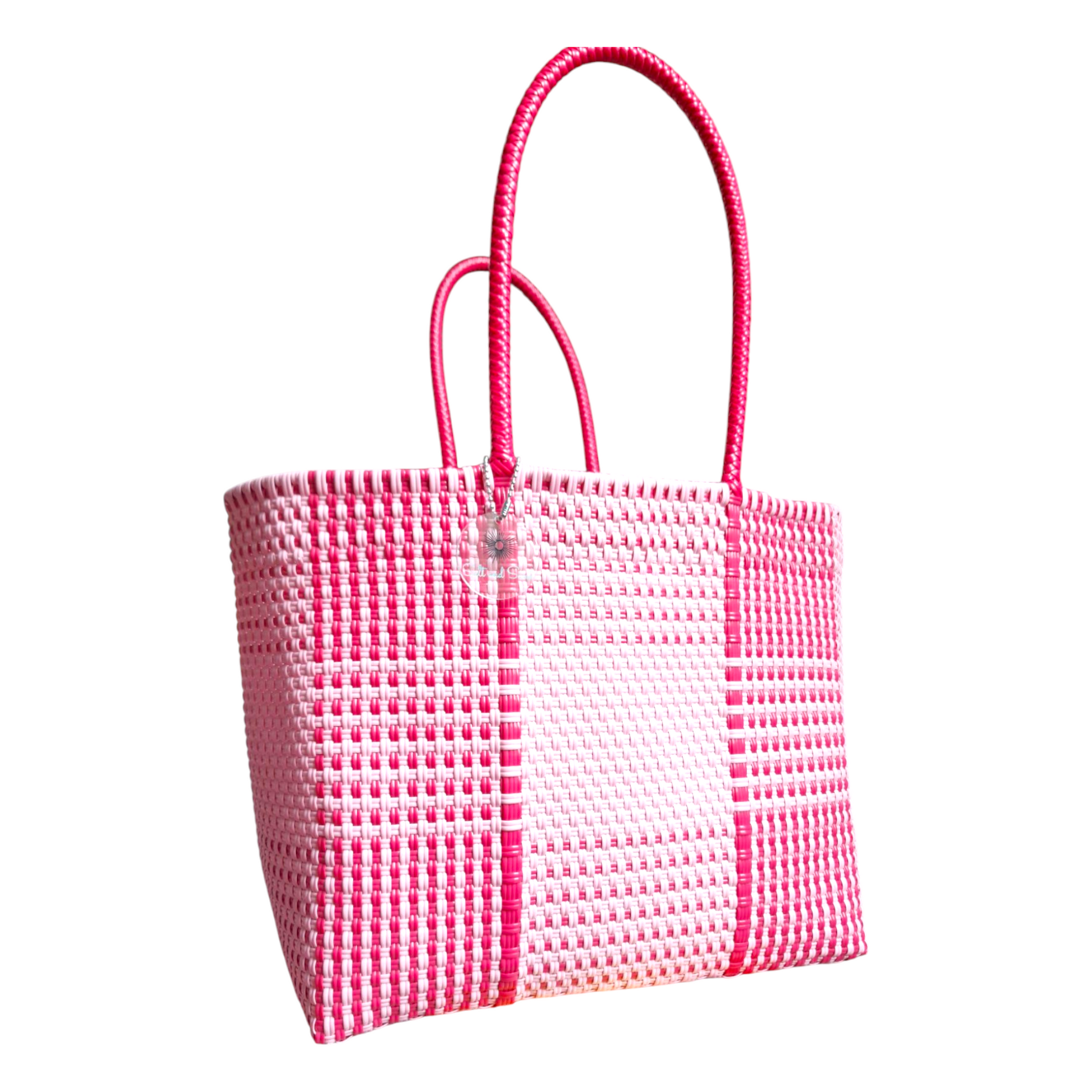 100% recycled plastic handmade bag, ensuring unique craftsmanship while reducing waste.